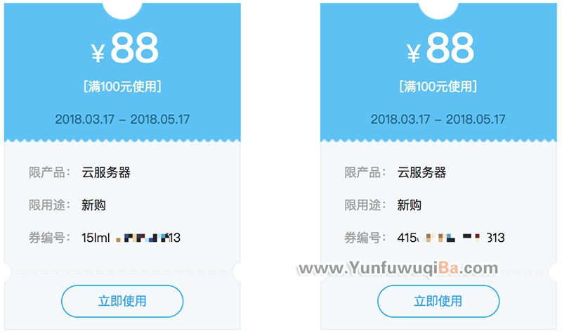 新用户注册小鸟元,即可获赠176元大礼包! 2张88元云服务器代金券(满100可用)