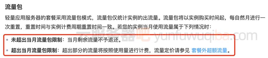 2、超出当月流量包限制,超出部分的流量将按照使用量进行计费,参考:腾讯云轻量应用服务器套餐外超额流量计费